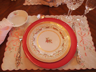 It was the first time I have been able to use my china that I received as a Pinkmas gift from my girls (my dogs and cats) they are such thought shoppers always finding pretties for Mama.( hmmm) It was fun to dress up the table, use my pretty silver Love Disarmed flatware, and the new little berry dishes for the fruit salad. I hope you enjoyed visiting my Pinkatine lunch.